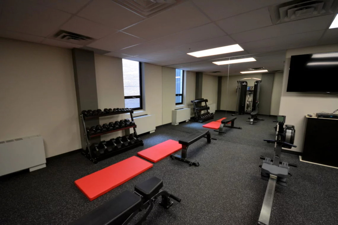 Stay fit in the building's shared fitness area, which is equipped with essential workout facilities to help you maintain your fitness routine during your stay.