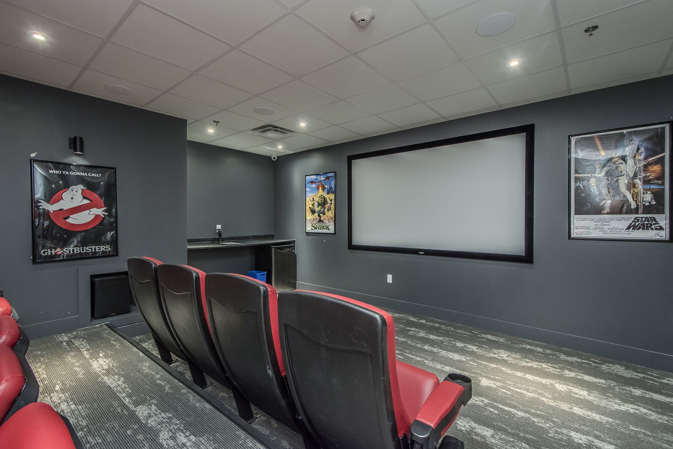 - Enjoy a theatre-like experience in the building with a surround sound system and cozy seating, perfect for watching movies or listening to music.