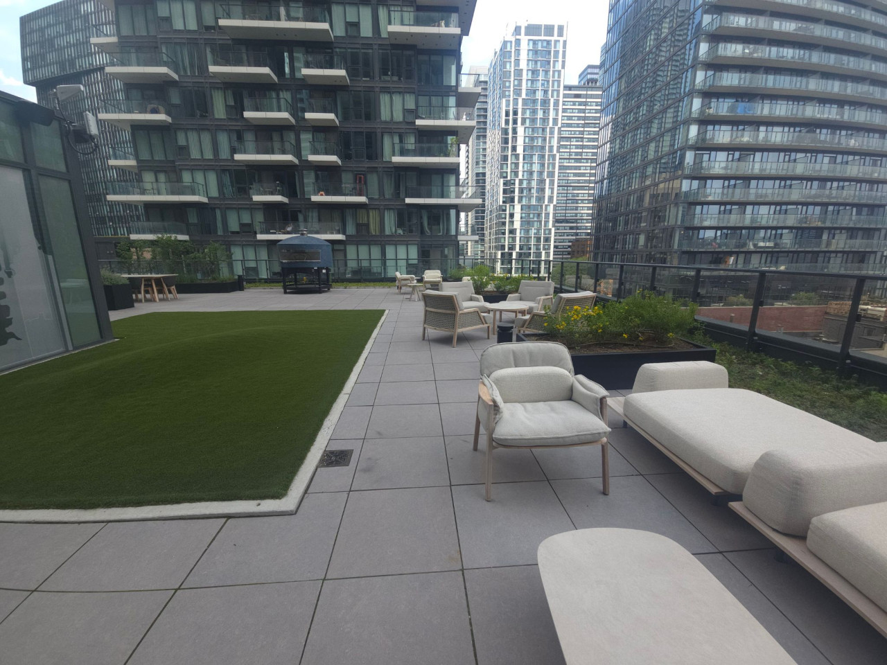 Step into a spacious and inviting living area with picturesque views of Toronto’s vibrant Garden District. Relax on the plush sofa, stream your favorite shows on the Smart TV, or unwind in the serene, well-lit ambiance of this thoughtfully designed space — just moments from the energy of Queen Street and the charm of nearby green spaces.